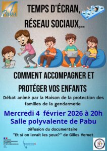Dans une démarche de prévention et de dialogue, la commune organise un débat de sensibilisation à destination des parents afin d’échanger autour de ces enjeux actuels, avec la Maison de la protection des familles de la gendarmerie.