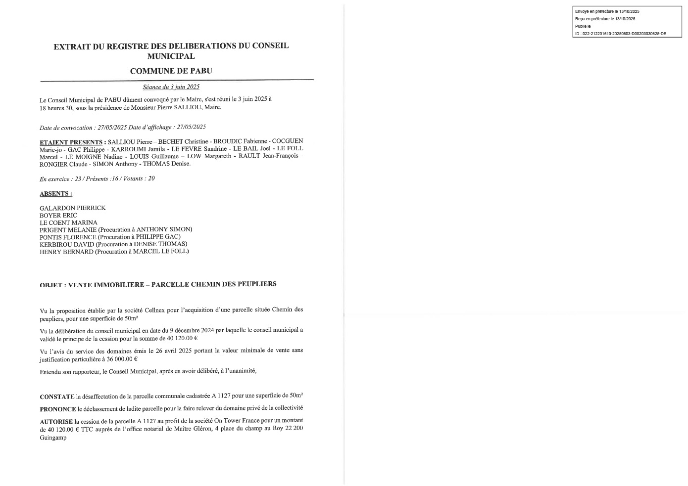 - Délibérations de la séance du conseil du lundi 7 juillet