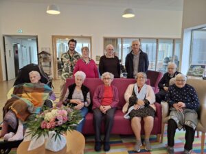 Comme pour les autres résidences , les élus ont offert à chaque pabuais et pabuaises un kit de soin et de bien-être, madame Le Souder a reçu en plus un bouquet de fleurs.